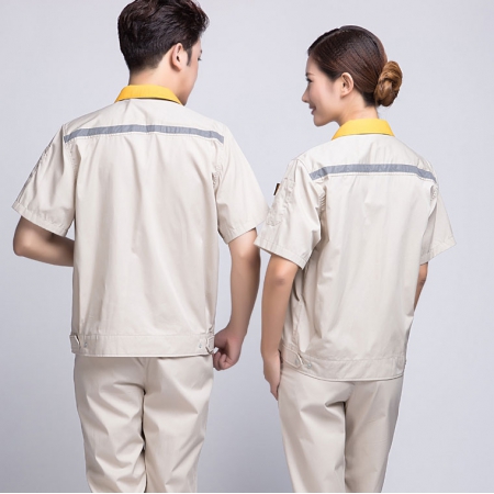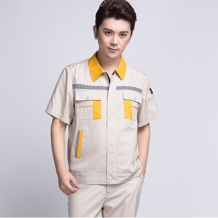 当前位置: 主页 > 工作服 > 短袖工作服 > 米色拼黄色短袖工作服AD09-1