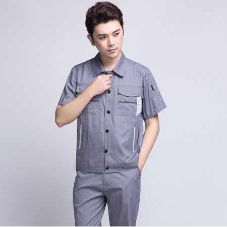 清灰拼银灰全棉夏季工作服AD06-2