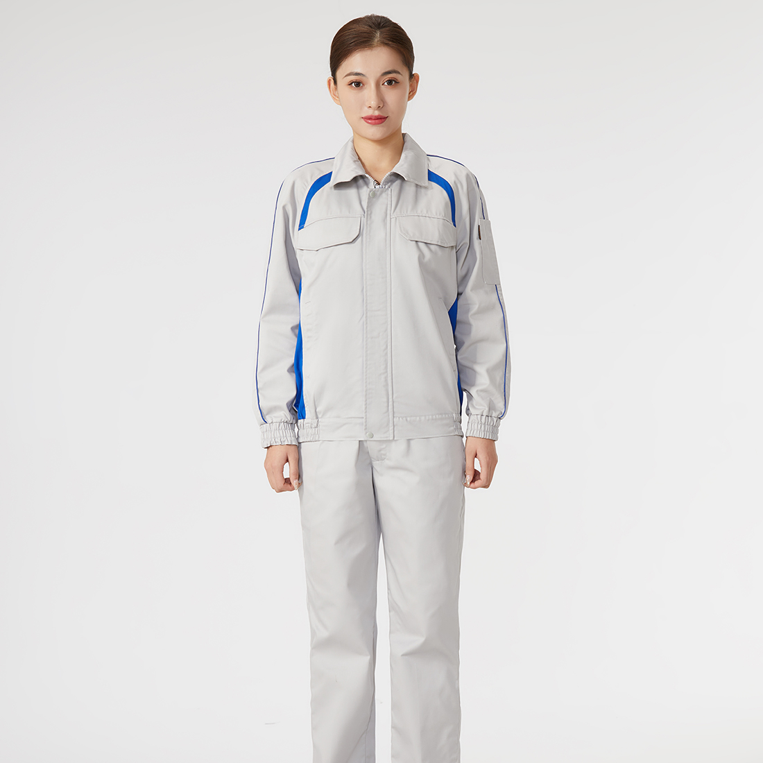 浅灰拼艳蓝色工作服AC2204-4